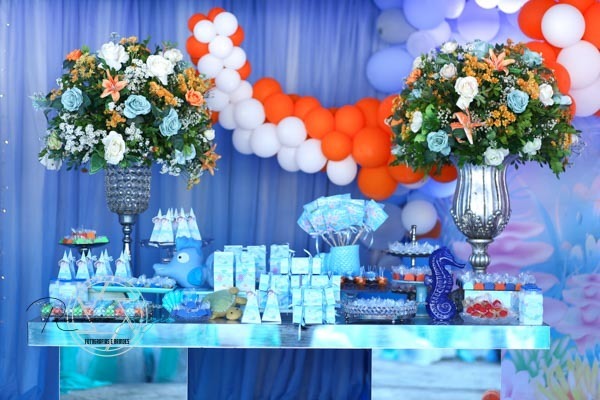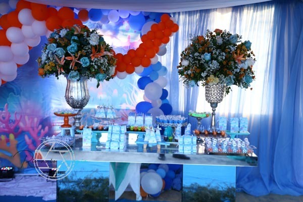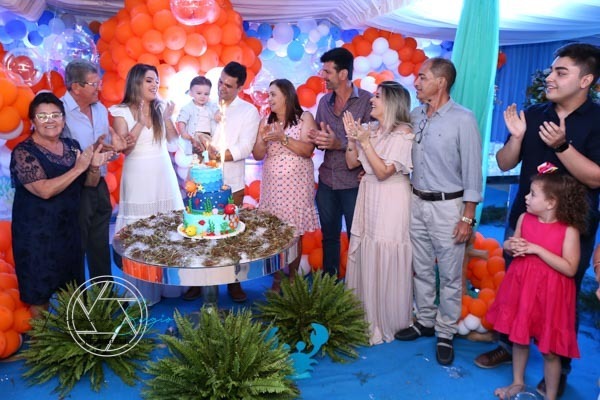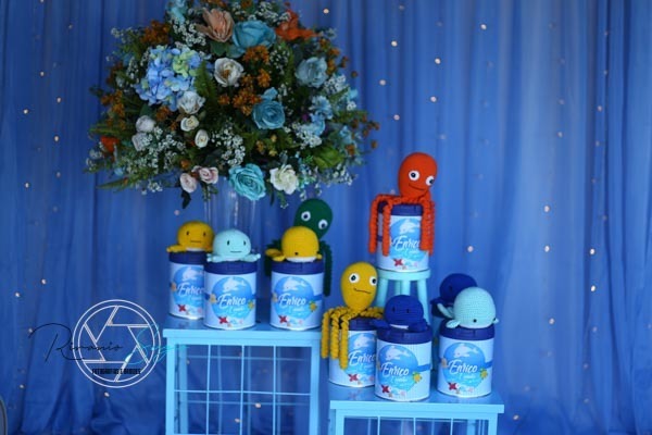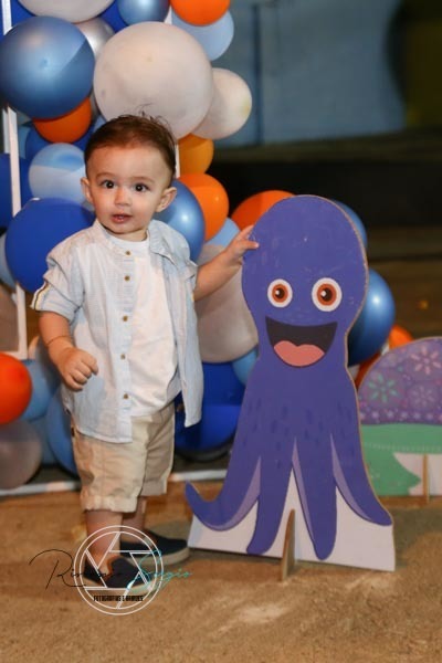 carinho , com a presença de familiares e amigos. E a alegria do Enrico que ficou encantado com toda decoração fundo do mar.